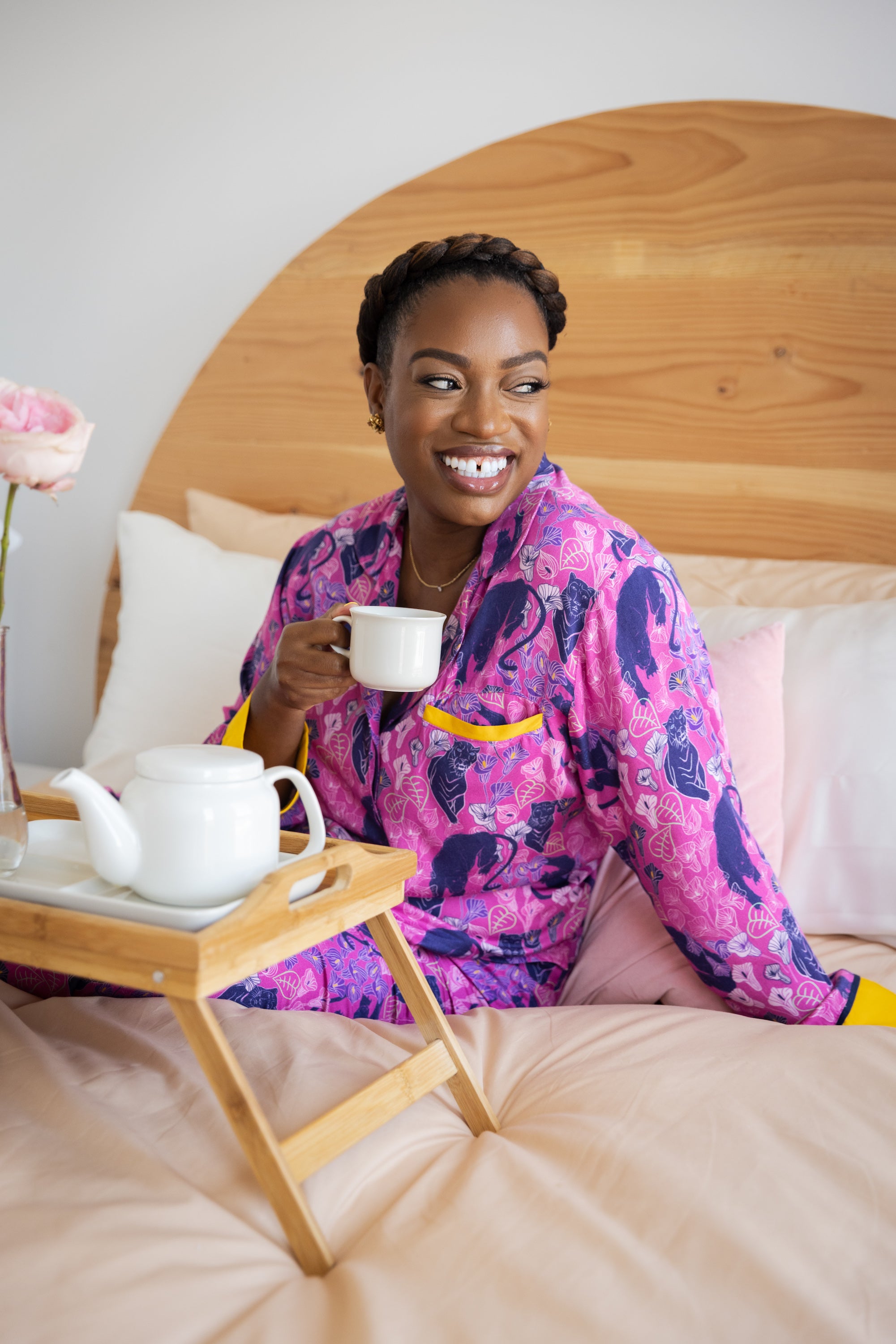 Before the pandemic, I loved putting together outfits. When the stay at home orders hit, I found myself in drab sweats and old tee shirts. Eventually, I started dreaming about haute home clothes. That’s when Melda Moda was born.